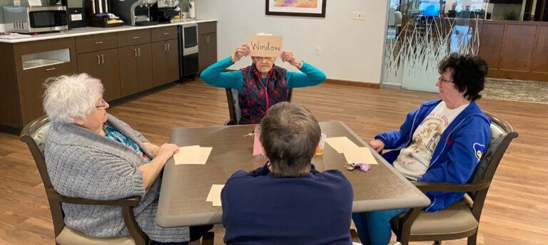 For example, under the Discover pillar, Carmel residents recently enjoyed a Brain Fitness activity called Head Case. The game was simple yet stimulating—each participant wore a card on their forehead while teammates provided clever clues to help them guess the word. The room buzzed with laughter, quick thinking, and moments of triumph as residents worked together. Activities like this are more than entertaining; they engage cognitive skills like memory and problem-solving while strengthening social bonds. Backed by science and bursting with joy, Brain Fitness sessions like Head Case show how discovering new ways to challenge the mind can also spark meaningful connection.