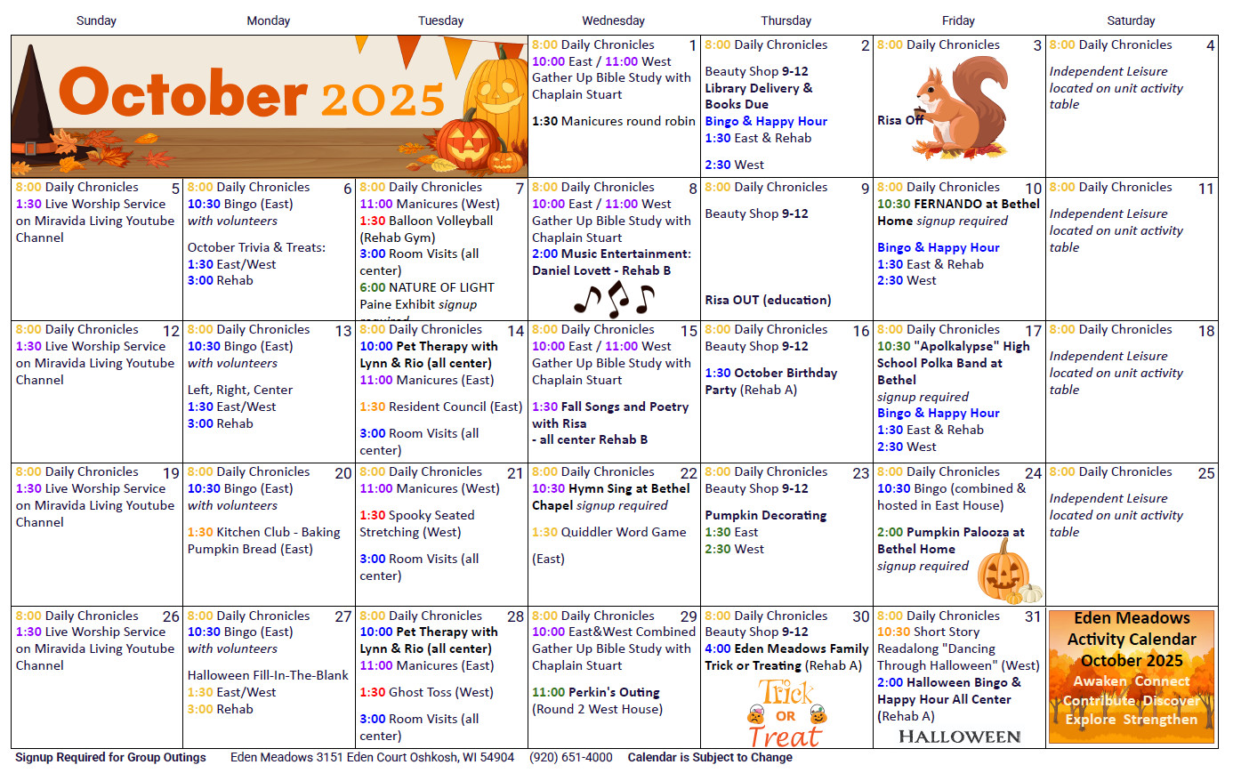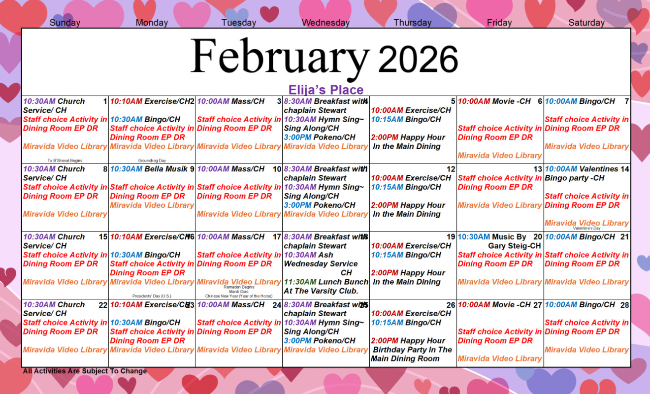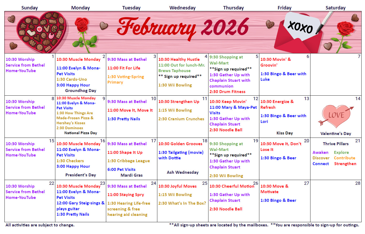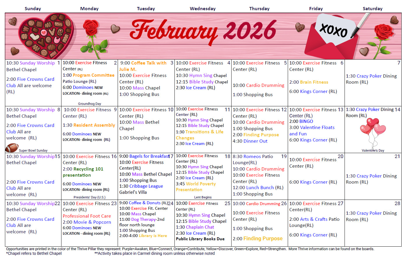 Events on our calendars align with one or more of our six color-coded pillars, easily identifiable on our calendars for a balanced, enriching experience.